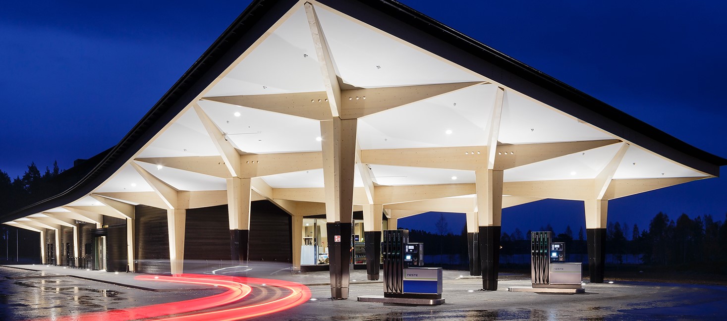用24根膠合木梁構建的高速公路服務(wù)站