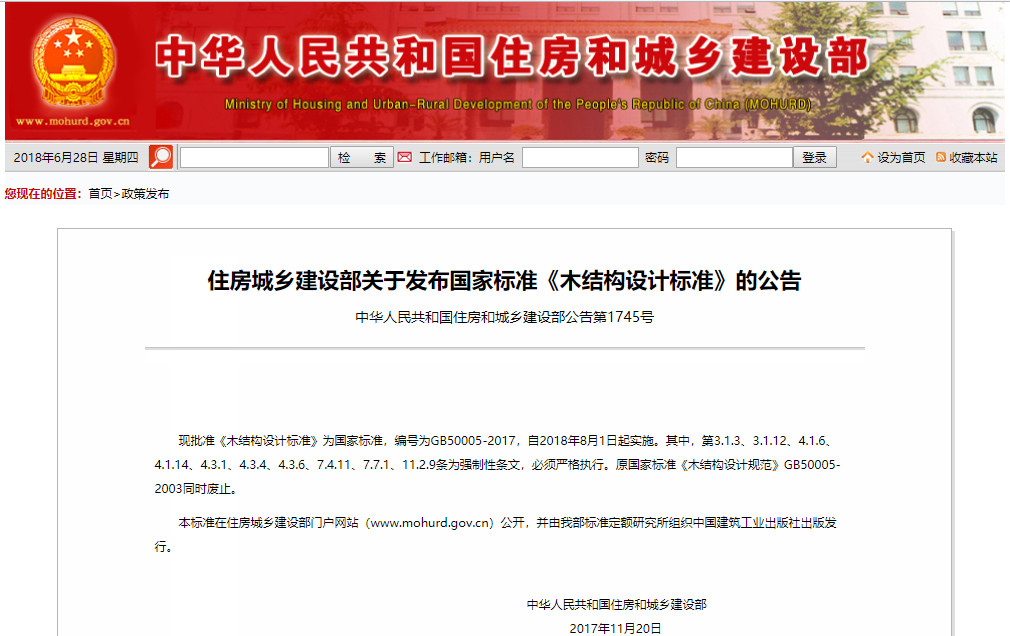 6月26日,住建部官網(wǎng)發(fā)布了GB50005-2017《木結構設計標準》,該標準自2...